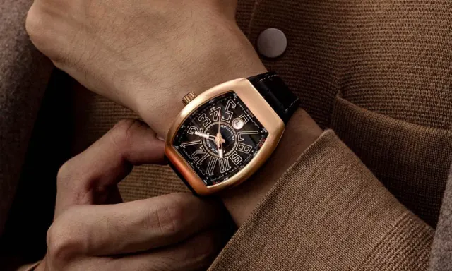 Angka-angka besar dengan gaya khas Art Deco menjadi ciri utama jam tangan Franck Muller. Tampilan ini membuat jam terlihat mewah, dramatis, dan mudah dikenali meski dari kejauhan.